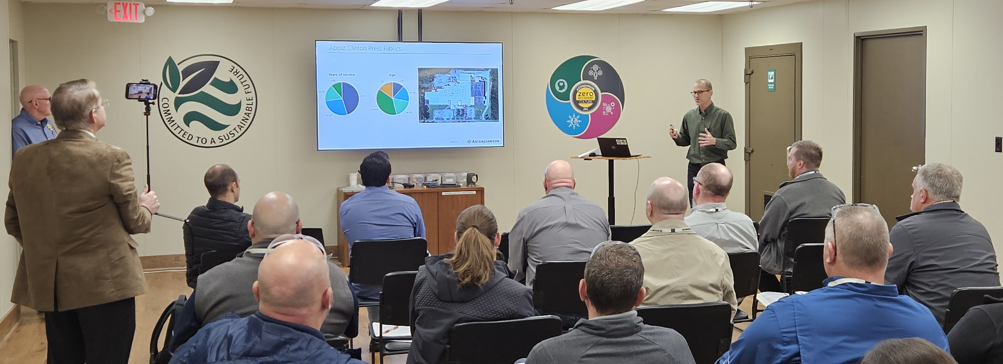 AstenJohnson Clinton recently hosted an SCMEP OpExChange event to showcase the site’s work with our ZAC Safety System. The OpExChange is a large group of South Carolina manufacturers who best practice share topics related to manufacturing. The event was attended by 26 people from 18 different companies. Scott Dudley and his team were able to proudly share the ZAC Safety360 work the site associates have collaborated on, and to showcase their facility, associates, products, and safety systems for the event participants.