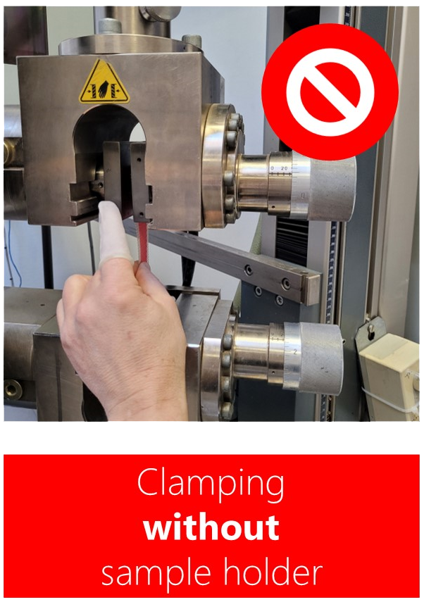 The associate was tearing tissue samples on a testing device. When opening the pneumatic clamp, they operated the switch button incorrectly so that the clamp closed again.