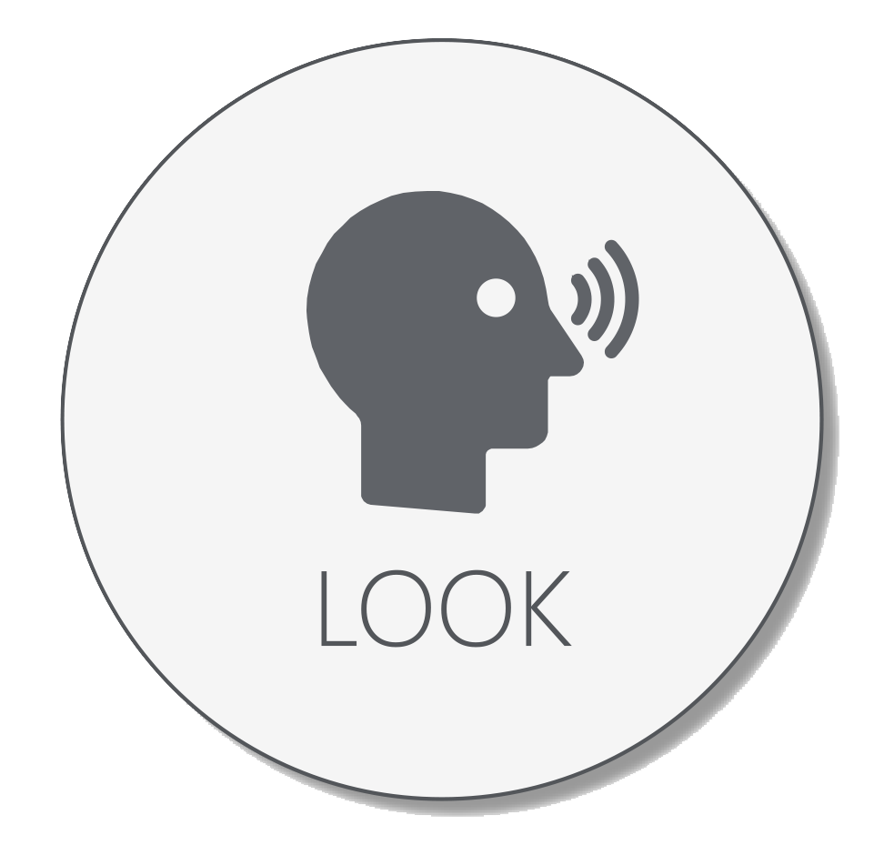 Look: Actively seek out safety risks in conditions, behaviors, and work processes. Identify and highlight effective safety practices and examples.
